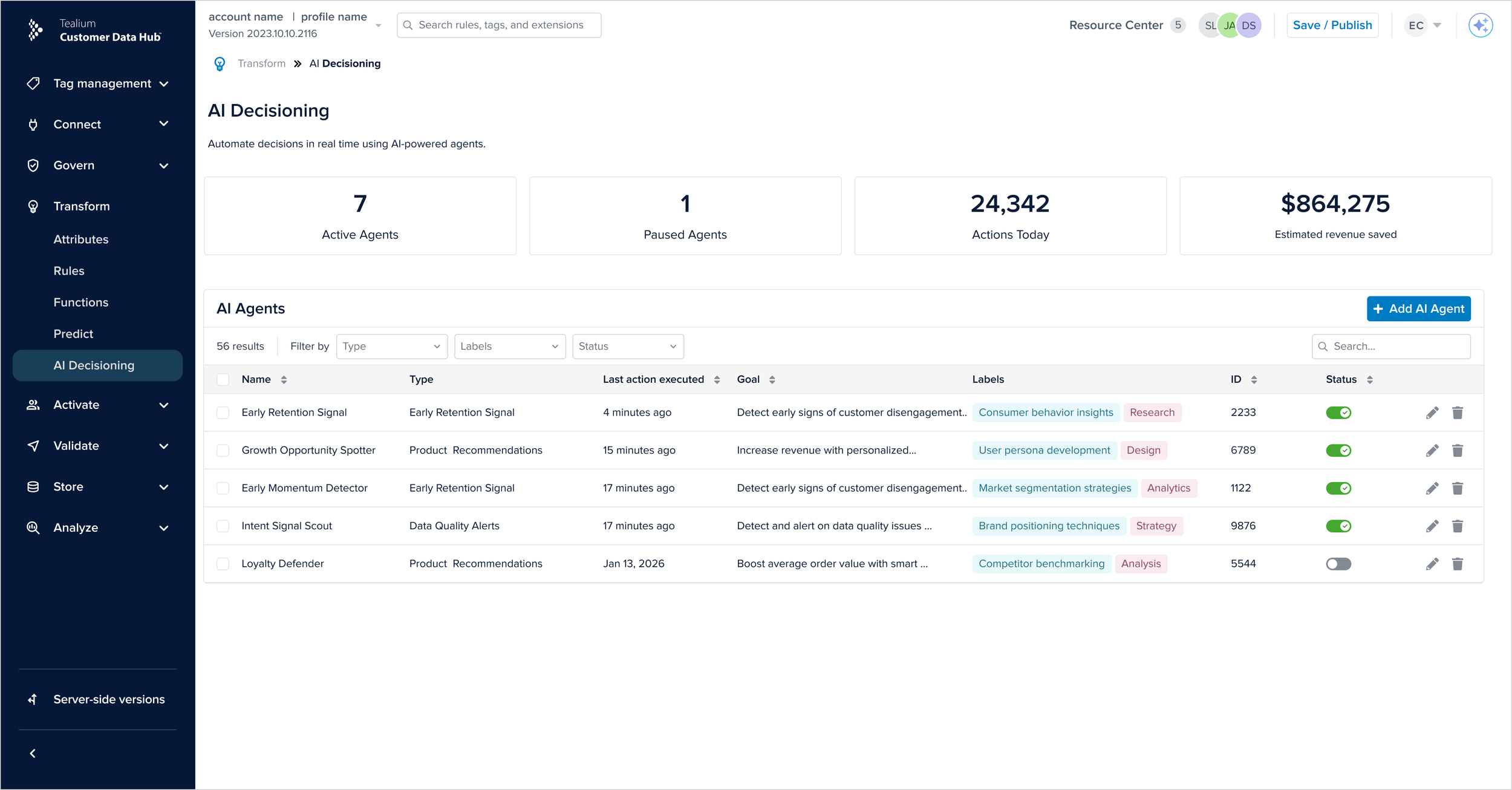I led the evolution of Tealium’s AI capabilities, first designing AI Note Generator and AI Chat Assistant, then defining and launching the company’s first AI Decisioning Agent framework.